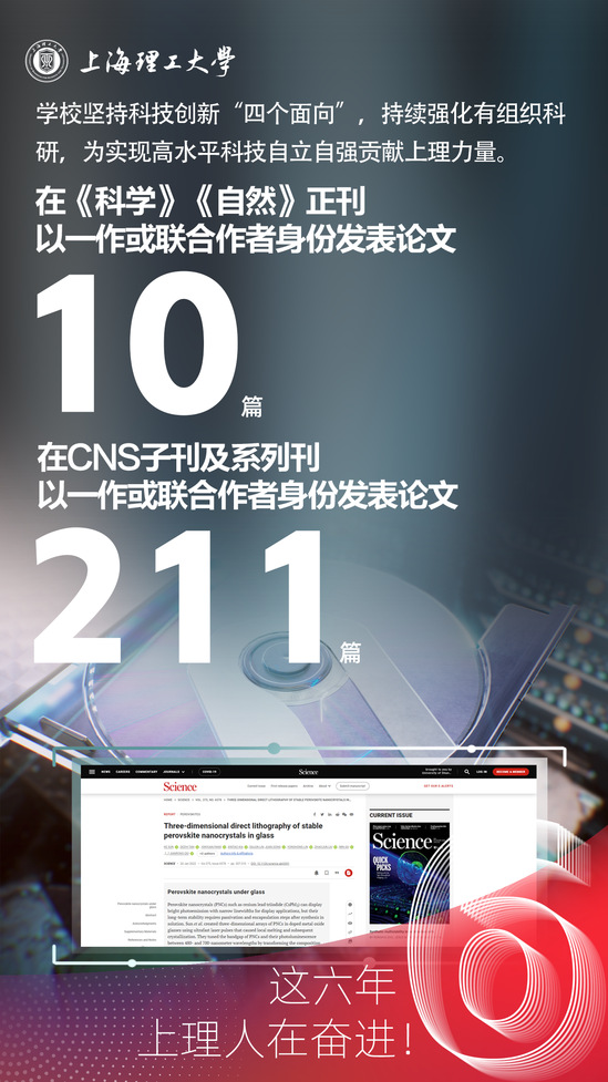 这六年,永利集团304am官方入口坚持科技创新“四个面向”,持续强化有组织科研,为实现高水平科技自立自强贡献上理力量。在《科学》《自然》正刊以一作或联合作者身份发表论文10篇,在CNS子刊及系列刊以一作或联合作者身份发表论文211篇。