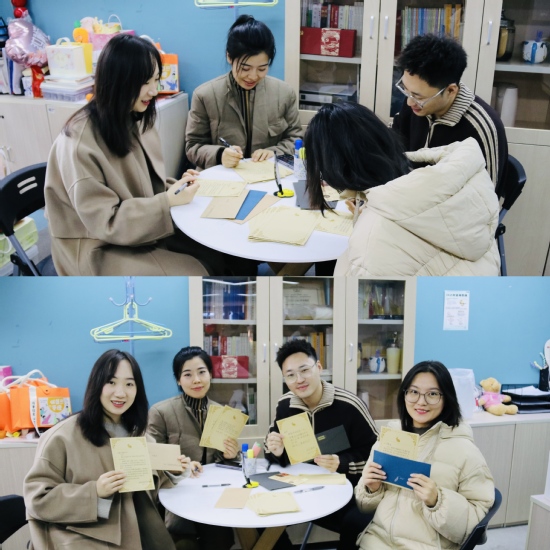 学生党支部的教师代表则亲笔写下对考研学子们的祝福,以明信片形式送给他们,字里行间流露出的不仅是温暖人心的鼓励,更是对同学们未来无限可能的祝福。