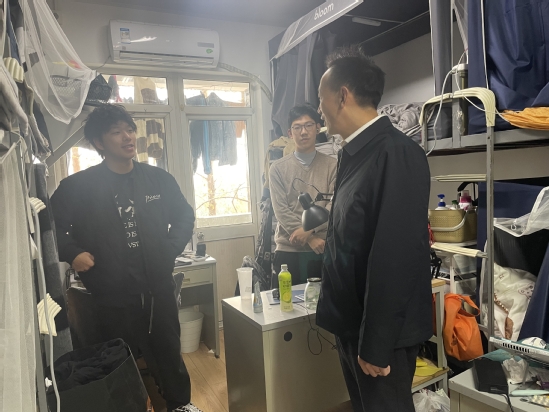 刘德强带队深入五宿舍、十二宿舍、五公寓二号楼、六公寓一号楼和六公寓三号楼,实地走访、耐心叮嘱、亲切交谈,近距离了解了学生们在宿舍的学习、生活情况,对发现的问题进行了详细的记录和反馈,并要求相关部门立即制定整改措施,明确整改时限,确保安全隐患得到及时有效的消除。同时积极鼓励同学们要自觉维护宿舍卫生、筑牢安全底线,共同营造一个温馨、舒适、安全的居住环境。