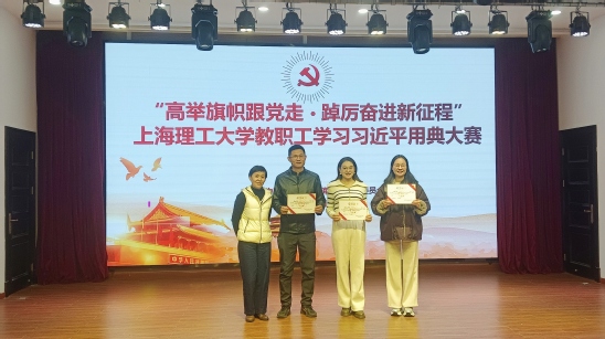 为深入学习贯彻习近平新时代中国特色社会主义思想,迎接学校第九次党代会胜利召开,全面提升学校教职工的思想政治素质,积极推动基层工会开展习近平用典学习,12月26日中午,校工会举办了“高举旗帜跟党走·踔厉奋进新征程”教职工学习习近平用典大赛活动。全校共有16个基层工会组织组队参加。党委宣传部副部长张炜、校工会副主席兼妇工委专职副主任杨向宁莅临现场指导工作,并为获奖团队颁发获奖证书。