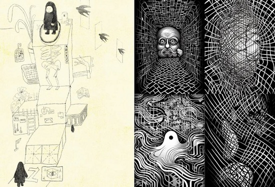 这份毕业设计以装帧图书为载体,文字是表达方式之一,插画也是主要的表现形式。她以黑白为主要配色,设计了一个黑袍小人的形象,它时而是可爱俏皮的玩家,时而是承担着压力的身影。