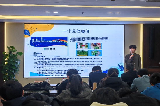 作为2024年“挑战杯”专项赛道国家一等奖项目负责人,材化学院海嘉伟同学从参赛者的角度,向大家分享了他在参与科技创新项目过程中的经历和感悟,以及项目从构思到实施、从失败到成功的艰辛历程,并从技术、团队、市场、价值四个维度,剖析了在“挑战杯”中需着重关注的几个方面。他结合自身参赛经历,为同学们明晰了优质项目的评判标准,分享了如何向专家清晰阐述团队的创新点与技术突破的经验方法,同学们对如何在“挑战杯”中脱颖而出有了更直观的认识。