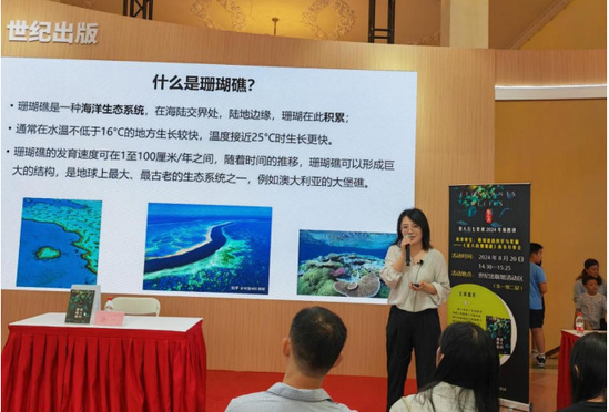 “海洋瑰宝:珊瑚礁的科学与美丽”,由华东师范大学河口海岸学国家重点实验室副教授许一分享《迷人的珊瑚礁》,由法国国家科学研究中心的百余位一线科学家倾力写就,以数百幅图片全景式呈现珊瑚礁这一关乎地球生态的“生命摇篮”。她呼吁大众关注珊瑚礁的保护问题。讲座有助于使读者在领略奇观的同时,感受到人与自然和谐共生的重要性,提高保护珊瑚礁和海洋生物的意识。