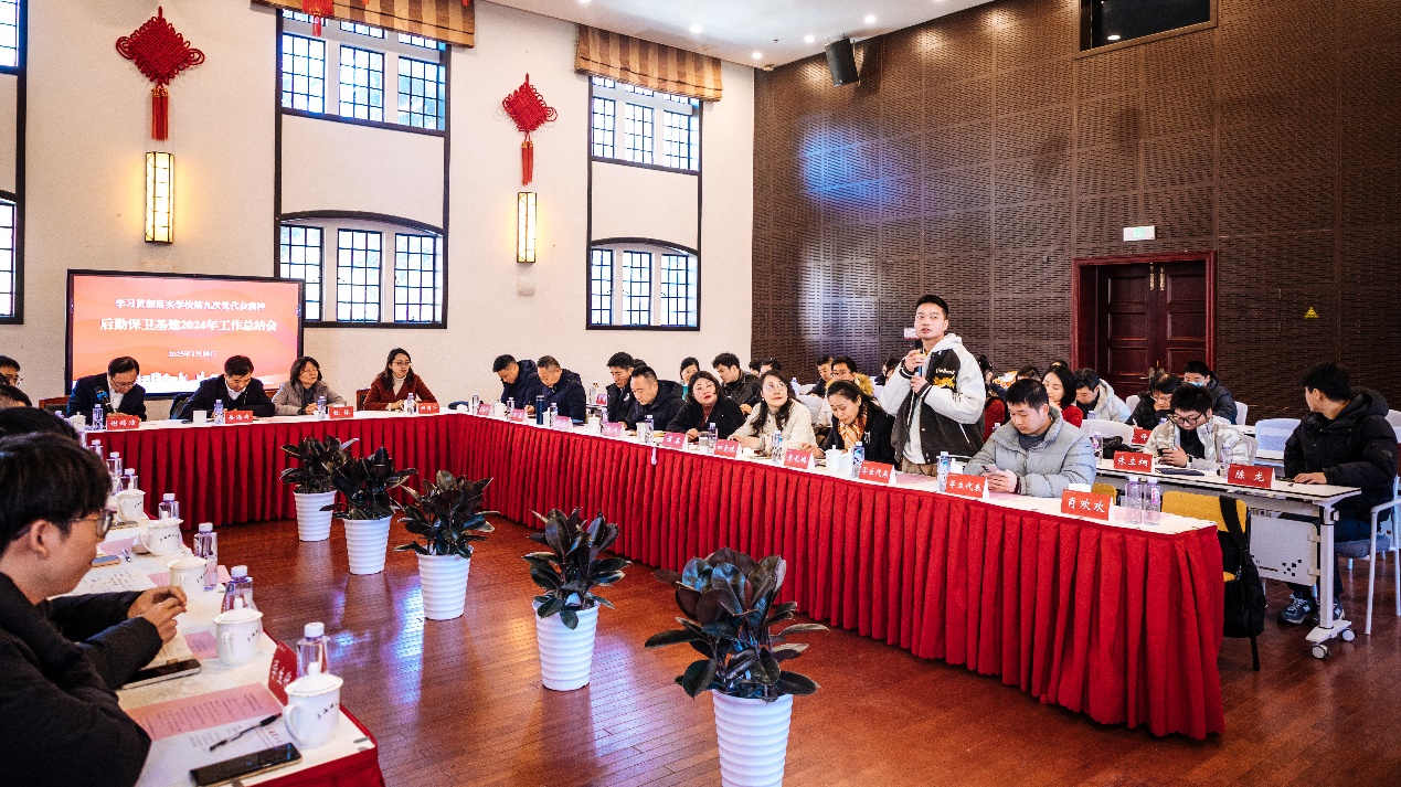 在2025年大保障部门工作务虚会上,聚焦学习贯彻落实学校第九次党代会精神,坚持目标导向和问题导向相结合,分析当前学校事业高质量发展过程中保障工作面临的形势和突出问题,围绕学校第九次党代会全面深化改革举措的落实,基建处、后勤管理处、保卫部(处)负责人分别对2025年的工作改革思路和具体工作规划作专题汇报。各部门还就内部控制制度、工作协同机制、师生服务举措、校园环境升级、文化内涵塑造等进行了深入研讨交流,以务虚谋务实,以谋定促行动,为更好地开展2025年校园大保障工作制定了科学的战略路线图。