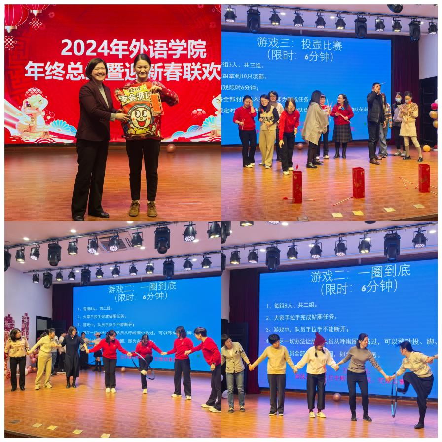新年伊始,万象更新。1月14日下午,外语学院在校工会之家二楼活动室举办2024年度总结暨迎新春联欢会。副校长蔡永莲、学院党政领导、外教代表、全体教职工欢聚一堂,欢庆新年的到来。
