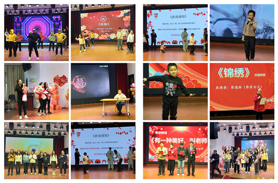 退休教师王小平演唱《父亲的草原母亲的河》。整个活动现场欢声笑语不断,节目形式多样,异彩纷呈,吉他弹唱、舞蹈、诗朗诵、钢琴演奏、刀旦表演等20 个节目轮番上演。“emoji 猜成语”“投壶游戏”“运球大作战”游戏环节,现场观众积极参与互动,热情高涨。