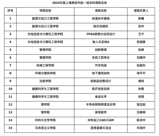 近日,上海市教育委员会公布了2024年度上海高校市级一流本科课程认定结果,永利官网《低温技术基础》等15门课程成功入选,获批数量位列市属高校第二。截至目前,永利官网共获批上海高校市级一流本科课程68门。