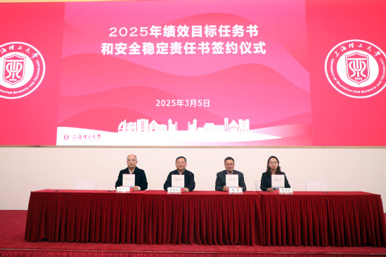 3月5日上午,学校召开2025年春季干部教师大会,传达学习上海市教育大会和2025年春季上海高校党政负责干部会议精神,贯彻落实学校第九次党代会工作部署,布置全年重点工作。校党委书记王凌宇传达会议精神并作总结讲话,校长朱新远主持会议并动员部署学校全年重点任务,副校长张众主持颁奖及签约仪式。全体校领导、职能部处和学院相关负责人出席会议。