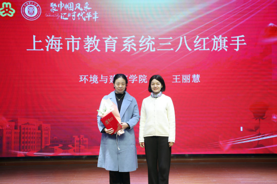 会上,蔡永莲宣读荣誉表彰名单并为“上海市教育系统三八红旗手”颁奖,孙红为学校优秀妇女工作者、学校三八红旗手、三八红旗集体颁奖,李志清为上海市教育系统工会理论研究会(妇女理论中心)课题二等奖、能动学院五星妈咪小屋颁奖,黄志强为上海市女大学生职业飞翔海鸥计划“海鸥之星”、上海市女大学生创新创业大赛颁奖。