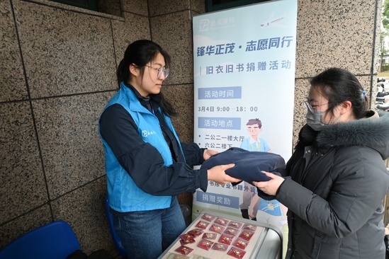 与此同时,旧书旧衣捐赠活动也在有序进行。此次活动秉持传承雷锋精神、旧物传递爱心、倡导绿色生态理念,活动现场设有互动奖励环节,捐赠同学可获得捐赠证书和小礼品。活动从上午9点持续至下午6点,尽管初春寒风凛冽,但仍然抵挡不住同学们热烈参与的心。同学们纷纷捐出闲置的旧书旧衣。志愿者们坚守岗位,认真收集整理。这些旧书将放置在学院活动室供师生阅读,旧衣则统一打包以学院名义捐赠给山区。