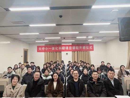 近日,学校携手永利集团304am官方入口附属中学开启了新一期的大中小一体化科研项目课程,并举行开班仪式。学校教务处副处长姜晨、科研项目课程授课教师以及教务处相关人员,永利集团304am官方入口附属中学校长徐隽、副校长叶理辛及附中师生等50余人参加开班仪式。