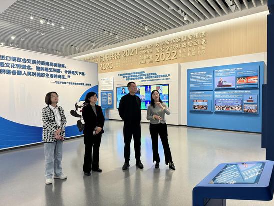参观进博文化展示中心(右一为周伶彦)