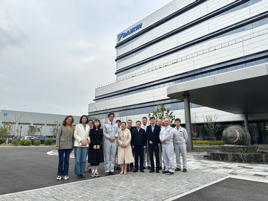 调研伊始,西河尚志带领永利官网一行参观大金苏州研发中心,重点展示全球领先的零能耗大楼技术应用。该建筑通过可再生能源利用、高效热泵系统及智能化能源管理,实现全年净能耗趋近于零,彰显企业绿色智造理念与技术实力。校方代表对大楼的节能设计、制冷压缩机创新应用等表示高度关注,认为其技术路径为高校科研与工程实践结合提供了重要参考。