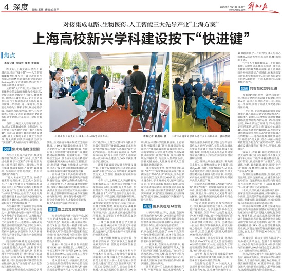 当前,上海正大力培育新质生产力,深入实施集成电路、生物医药、人工智能三大先导产业新一轮“上海方案”。由此,从复旦计算机到同济交通运输,从上大微电子到上理工工程学等,各大高校相关学科建设正按下“快进键”,成为新兴的学科增长点。