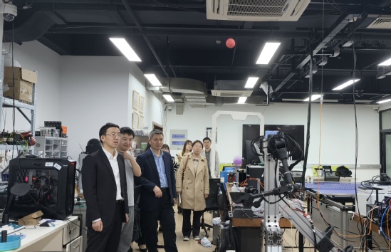 会谈结束后,殷明一行实地参观了学校机器智能研究院,现场观摩了智能机器人等创新成果。