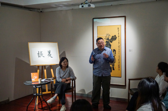 4月23日下午,“书画山河·世纪讲书人暨美谈读书活动”在沪江美术馆二楼掀起思想涟漪。上海书画出版社《轻松趣味聊中国画》一书的责任编辑黄坤峰以中国画为引,抛开学术教条,从《清明上河图》里的“四个和尚”讲到《重屏会棋图》里隐藏的棋局,再到《玩骷髅的骷髅》中的谜团,笑称:“看懂中国画,要先学会‘猜谜’—— 画家把心事藏在笔墨里。”