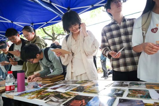 同济大学“图书集市”热闹举办,德语原版图书、敦煌笔记本等精品文创,“套书圈”“飞花令”等趣味挑战,拼贴诗、二十四节气明信片套印等创意体验……“阅读+”互动让阅读实感从“静”到“动”,让书香在校园中流动。