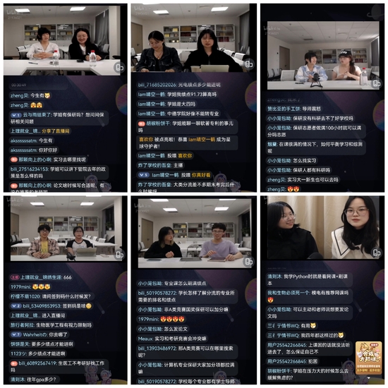 直播现场大一学生通过弹幕积极提问,“专利”“论文”“保研”“实习”等关键词纷纷跃上弹幕,这些问题不仅反映了大一学生对专业分流的思考,也体现了他们对学业规划的关注。学长学姐们针对这些问题一一耐心解答,分享自己的经验和见解,让每一位参与直播的学生都受益匪浅,同学们纷纷表示“焦虑感降低,方向更清晰”。