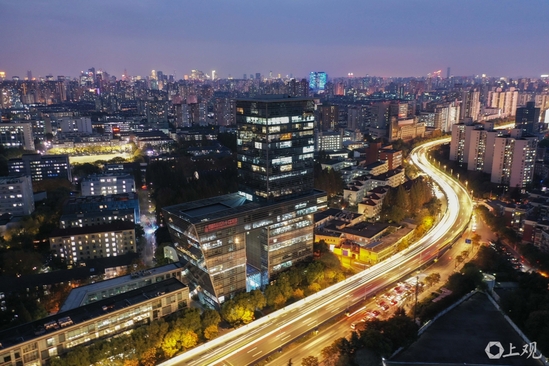 航拍镜头下的同济大学国家大学科技园夜色