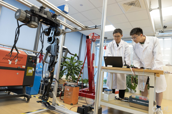 复旦大学工程与应用技术研究院仿生结构与机器人实验室在调试人形机器人的足部协调功能