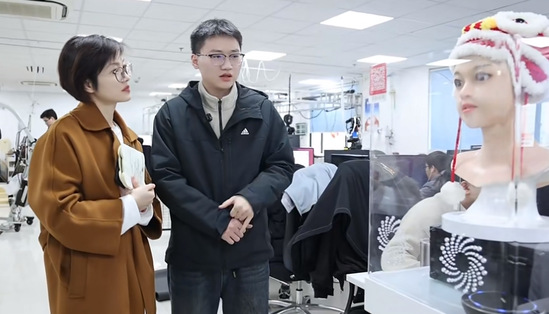 实验室成员朱永同向记者介绍表情机器人