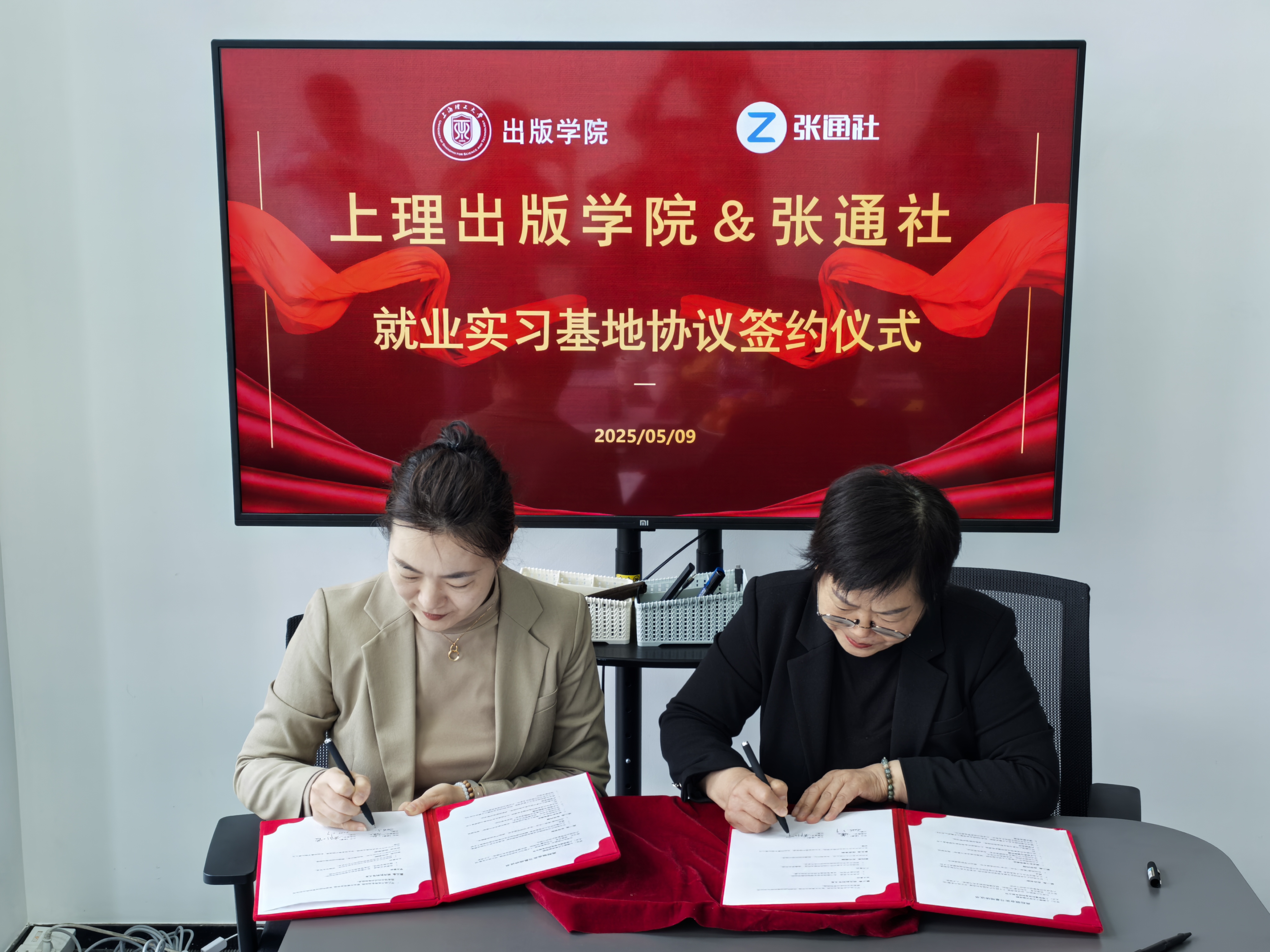 出版学院党委副书记王蕊与张通社合伙人郝红霞共同签署了《就业实习基地协议书》。根据协议,双方将在拓宽学生实习与就业渠道,精准对接科技企业对新闻出版传媒类人才的需求,推动产学研深度融合等方面展开深度合作。