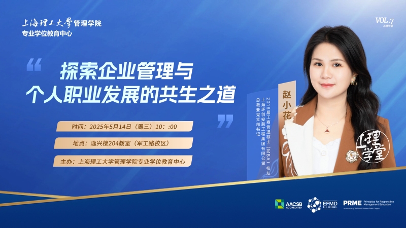 嘉宾简介:赵小花,2018届工商管理硕士(MBA)校友,上海环创安装工程集团有限公司总裁兼党支部书记,崇明区第二届党代表,上海市安装行业协会副会长。2025年荣获“最美崇明劳动者”、“第七届上海市工商业领军人物”,曾获上海市五一“工人先锋号”、上海市“优秀青年企业家”称号。