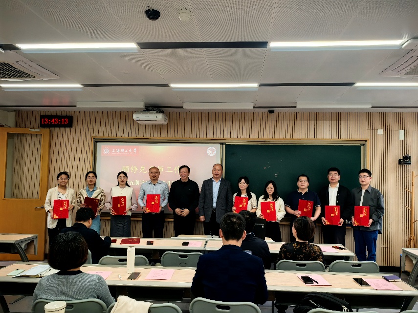 活动伊始,一段精心制作的往期学员培训回顾视频带领大家重温了顾铮先名师工作室的建设发展。孟宝全在讲话中回顾了顾铮先名师工作室的发展历程。他指出,过去几年,工作室始终保持着“厉兵秣马”的奋进姿态,在“厚积薄发”中积淀育人智慧;面向未来,更需要以“奋马扬鞭”的昂扬斗志,在教育事业新征程上勇毅前行。青年教师要牢记立德树人初心,在勤学善思中锤炼教学真功,将价值引领、知识传授和能力培养三者融会贯通,努力成长为塑造学生品格、品行、品位的“大先生”。随后,在热烈的掌声中,顾铮先宣读第五期17位学员名单,并与单彦广共同为学员颁发入选证书。