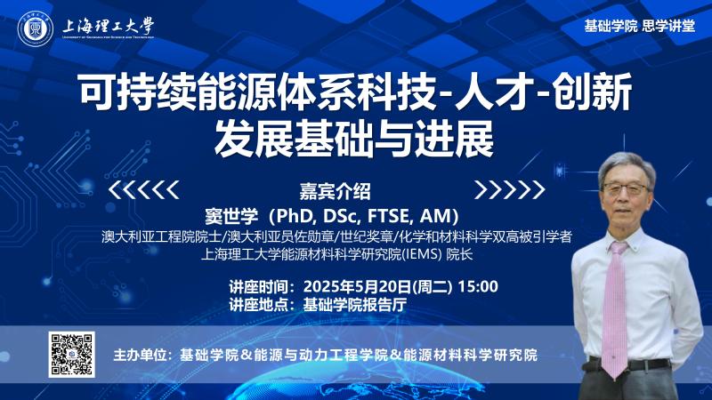 嘉宾介绍:窦世学 (PhD,DSc,FTSE, AM),澳大利亚工程院院士/澳大利亚员佐勋章/世纪奖章/化学和材料科学双高被引学者