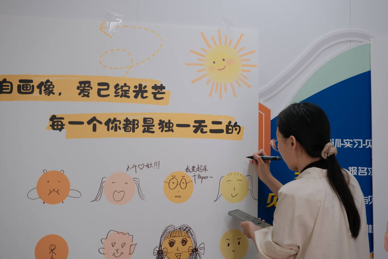 活动以创意绘画拉开序幕,学生们执起记号笔与丙烯颜料,在 “水果笑脸”“情绪色块”“灵魂涂鸦” 等主题画布上勾勒自画像。艺术疗愈的魔法悄然施展,色彩与线条交织成自我认知的桥梁,让学生们在创作中领悟 “真实自有千钧之力”,放下对完美的执念,以全然接纳的姿态拥抱本真的自我,为青春成长注入强大能量。