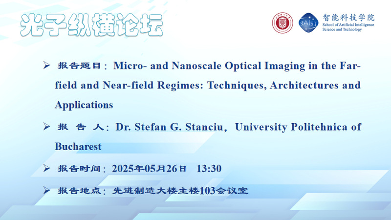 报告题目:Micro-and Nanoscale Optical Imaging in the Far-field and Near-field Regimes: Techniques, Architectures and Applications