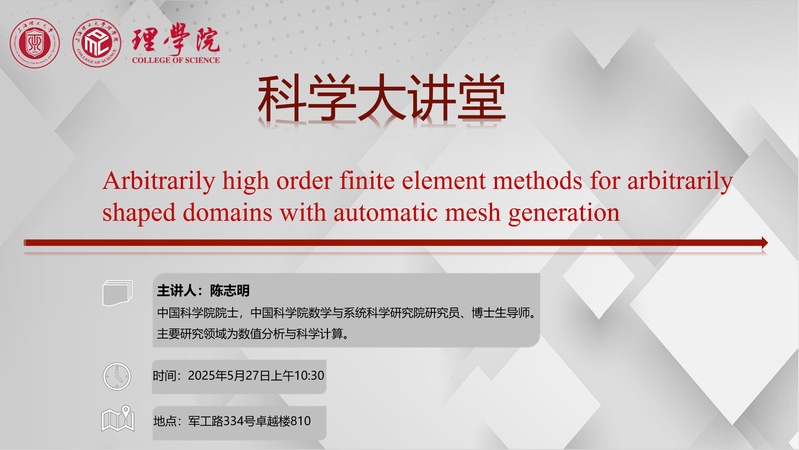 讲座题目:Arbitrarily high order finite element methods for arbitrarily shaped domains with automatic mesh generation