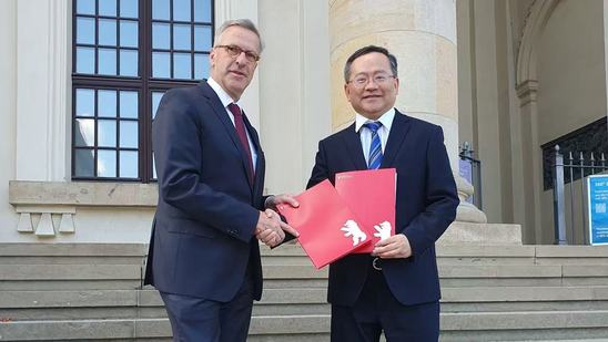 代表团还访问了勃兰登堡科特布斯工业大学,校长格朗德(Grande)和负责国际事务的副校长贝尔格(Berger)带领相关负责人接待来访,双方围绕如何深化两所大学长期合作展开探讨,并就双学位联合培养项目优化联合培养机制、拓展科研合作方向等方面进行了深入交流,双方校长续签现有双学位硕士联合培养项目协议,为今后开展多领域深层次的国际合作交流奠定基础。
