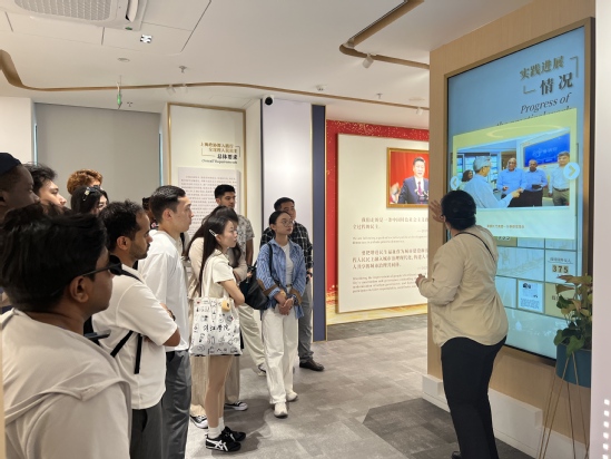 在场馆工作人员的讲解下,国际学生参观学习了上海政协在推动全过程人民民主中的创新举措和丰硕成果。建设生境花园、启动“一街一品”社区自治项目、牛心包膜技术取得突破……这些生动实践案例让同学们深刻体会到,全过程人民民主深深扎根于中国人民之中,与民心相通、与民情相连、与民生相融。