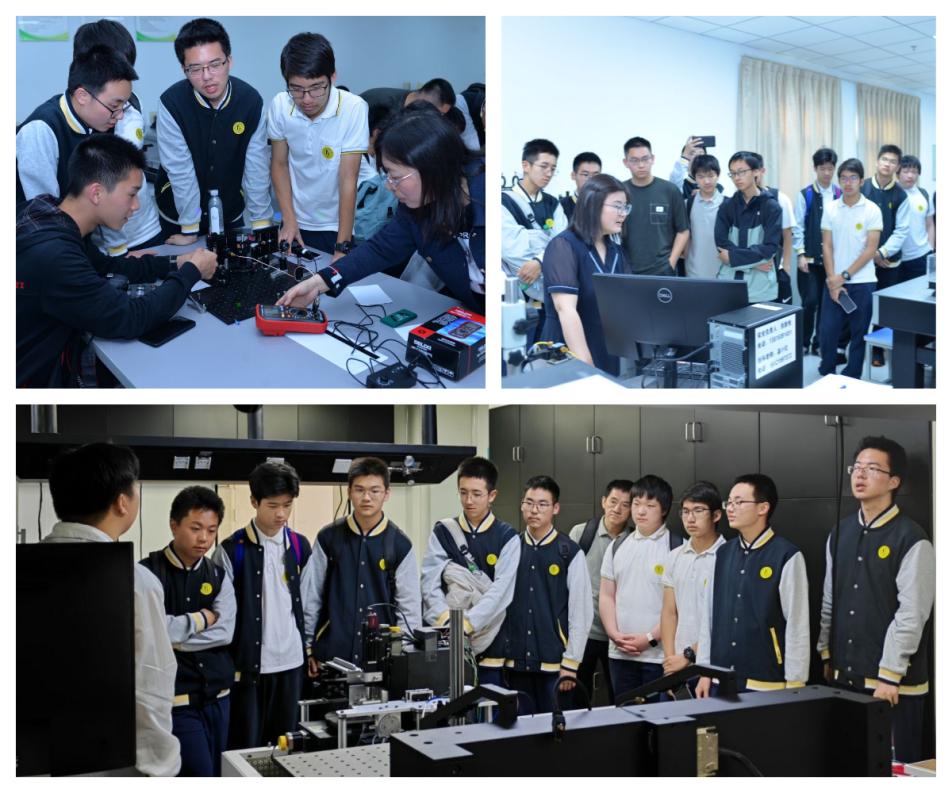 下午,科技节活动接待了上海市控江中学“致海书院”学生研学实践活动。同学们聆听了“追光一甲子,拳拳报国心”未来光学科学家精神报告和“光的波粒传奇——从微粒波动之争到太赫兹技术前沿”科普讲座后,进入本科实验教学中心。在韩朝霞老师的带领下,他们初识光谱技术,用光学元件搭建简易的扫描式光谱仪,直观认识了光谱仪的组成和原理,并观察到七色光谱。温小红老师展示的生物芯片检测实验,通过沉浸式操作体验,让同学们了解到生物传感器在老年疾病早筛和动态监测中的关键作用。随后,同学们来到永利集团304am官方入口太赫兹技术创新研究院,参观了研究生们正在进行的科研项目。他们认真听讲、积极提问,在交流中不断碰撞思维火花。