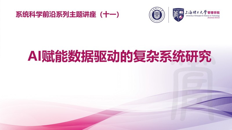 讲座题目:AI赋能数据驱动的复杂系统研究