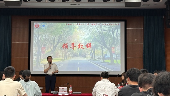 决赛现场,机械工程学院党委副书记韦彪、团委副书记高涵,党委研究生工作部就业办王娜、马克思主义学院青年教师宗立宁以及校研究生会执行主席苏钊凝担任评委。