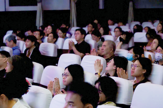 演出开始前,上海评弹团团长高博文以艺术导赏的形式,介绍了以评弹艺术为代表的非遗文化的活态传承和创新发展。五位国家一级演员以扎实的功底和细腻的表演,将评弹“说噱弹唱演”的艺术特色展现得淋漓尽致。琵琶的清脆、三弦的醇厚,交织出动人的旋律,为紧张的剧情增添了一抹柔情;吴侬软语的诉说,或激昂、或婉转,生动地刻画了一个个鲜活的人物形象。在表演中,演员们巧妙运用“噱”的艺术手法,为紧张的战情节增添了诙谐幽默的元素,让观众在欢笑中感受到革命先辈们乐观向上的精神品质。在演绎英雄们的英勇事迹时,演员们又以深情的唱腔和真挚的情感,引发了观众的强烈共鸣。师生们沉浸在评弹的世界里,感受革命先辈们为了国家独立、民族解放所付出的巨大牺牲。