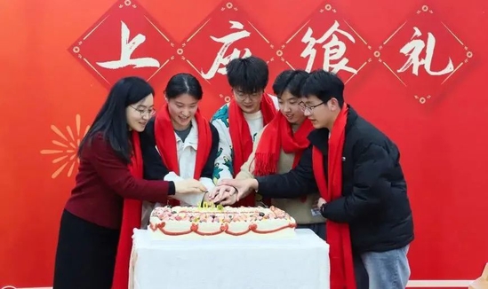 不只是年夜饭。1月23日,上海应用技术大学特别设置的集体生日环节,更是将活动氛围推向高潮。学校为这段时间过生日的同学们准备了生日蛋糕,烛光摇曳,唱响生日歌,寿星们收到了精美的生日礼物,现场温馨而美好。