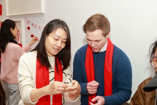 上海财大的中外师生共同参与了丰富多样的民俗文化体验活动,他们兴致勃勃地拼接手工灯笼、包饺子、书写对联福字、拓印吉祥画、DIY春节福桶……在活动中体验中国优秀传统文化的独特魅力。“和留校的同学们一起体验了丰富多彩的民俗活动,内心充满了喜悦与满足。”第二次在学校过年的财经研究所2022级农业经济学专业硕博连读生葛佳宁说。
