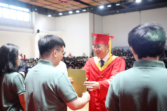 毕业典礼在2025届学生毕业留念专题片“尚理之歌”中启幕,几载春秋凝于光影:从湛恩大道初遇时的青涩,到实验室里攻坚的执着;从云端课堂中的坚守,到国际赛场上夺魁的荣光……每一帧画面都是立德树人初心的生动注脚,镌刻着2025届学子与时代同频、与母校共进的成长年轮。荣光时刻,张华宣读永利集团304am官方入口《关于表彰2025年度优秀毕业生的决定》,对获得荣誉的388名市优毕、916名校优毕予以表彰,勉励全体毕业生以优秀为镜,在强国建设中续写人生新篇章。
