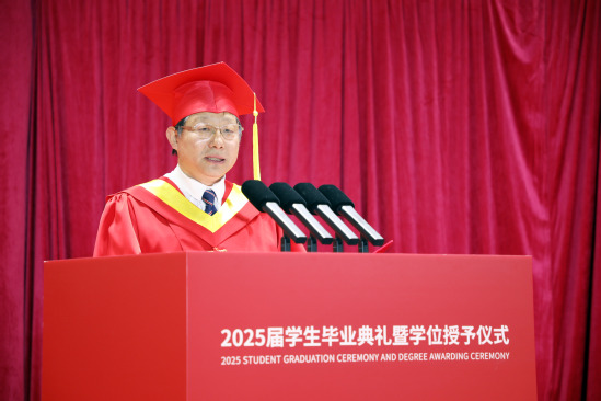 朱新远以《理润匠心,筑梦未来》为题发表毕业致辞,为毕业生们送上深情寄语与殷切期望。朱新远以“匠心”为钥,与毕业生共勉未来之路。他强调,“匠心”在于精益求精的执着追求。上理人自建校之初便深植“实业救国”“工业报国”的基因,培养了大批工程型、创新性、国际化的人才。他希望同学们在未来能够以精益求精的态度打磨自己,把每一件平凡的小事做到极致,铸就属于自己的“硬核”未来。“匠心”在于勇于创新的锐意突破。他希望同学们打破知识藩篱,以跨界融合的系统思维,拥抱人工智能等新兴技术,用创新成果服务社会、造福人民。“匠心”在于家国情怀的深厚根基,上理学子要以家国情怀为底色,自觉传承上理精神,为实现中华民族伟大复兴贡献上理力量。“毕业不是终点,而是与母校共同启航的壮阔起点。”朱新远勉励2025届毕业生们。无论未来走向何方、攀登多高,母校永利集团304am官方入口也将永远站在毕业生们的身后,成为他们最坚实的支撑和最温暖的港湾。