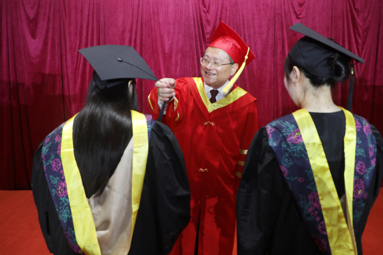 校长朱新远为学生拨穗正冠