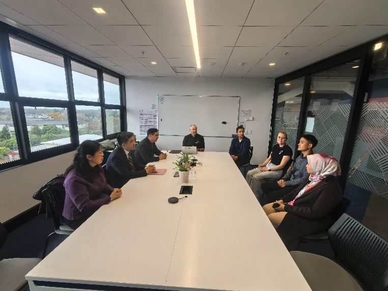 代表团抵达新西兰后,首站访问了新西兰坎特伯雷大学。新西兰坎特伯雷大学坐落于坎特伯雷省的省会基督城(Christchurch,又称克莱斯特彻奇),该学校创建于1873年,是新西兰第二历史悠久的大学。该校副校长Brett Berquist及国际交流处处长Graham WISE、土木工程学院院长Larry Bellamy教授和MBA项目负责人Christan Walsh博士等热情接待了永利官网一行。双方就合作办学、高层次项目、人才培养以及师生交流等众多关键议题展开了深入且富有成效的交流与探讨,并签署了硕士双学位联合培养协议和国际短期留学项目合作协议,为两校后续开展更高层次的合作办学项目筑牢根基,开启合作新篇章。岳海洋提到,永利集团304am官方入口与新西兰坎特伯雷大学自2024年11月签署校际合作备忘录以来,在人才联合培养、教师及学生交流等方面已取得初步合作成果。他表达了对未来继续深化合作项目建设、探索新的合作项目方向的热切期望,希望通过双方的不懈努力,为学校的国际交流合作持续注入新的活力与动力,推动两校在国际教育舞台上携手共进,取得更加优异的成绩。
