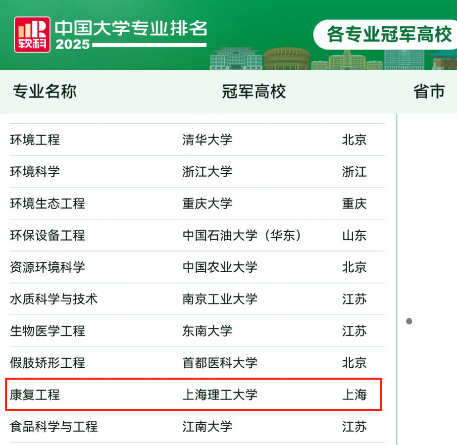 6月18日,高等教育专业评价机构软科发布“2025软科中国大学专业排名”,永利官网健康科学与工程学院康复工程专业获评A+评级,排名全国第一,彰显了该专业在国内相关领域的领先地位和持续影响。