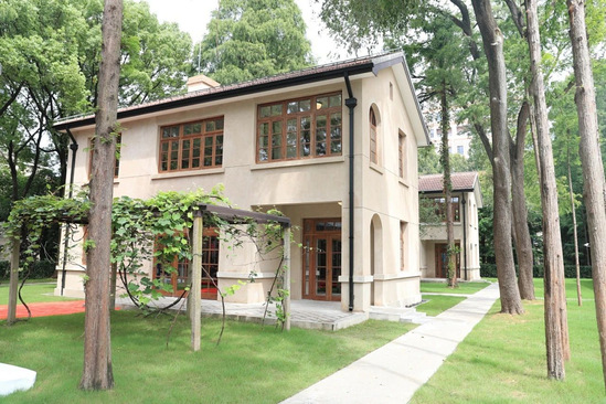 校园内绿树环抱、红墙辉映。这里既有红砖历史建筑改造的刘湛恩烈士故居红色文化主题馆,也有展示机械美学,将科技与美育巧妙融合的机械艺术博物馆,还有入选全国重点文物保护单位的沪江大学近代建筑。
