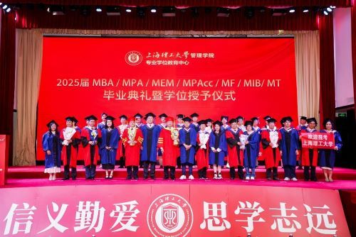 6月28日下午,永利集团304am官方入口2025届MBA、MPA、MEM、MPAcc、MF、MIB、MT毕业典礼暨学位授予仪式在军工路校区大礼堂举行。校长朱新远,副校长张众,研究生院院长崔国民,管理学院系统工程专业1990届毕业生、上海华虹(集团)有限公司董事长、永利集团304am官方入口MBA校外导师秦健,管理学院党政领导,各专业学位项目主任及教师代表等出席典礼。典礼由管理学院院长、专业学位教育中心主任赵来军主持。500余名毕业生与老师、亲友齐聚一堂,共享学业丰收的喜悦,铭记这一满载祝福的珍贵时刻。
