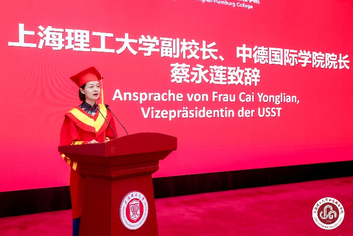 蔡永莲、杨荟楠、Michael Röther、单彦广、Vaupel、司呈勇、陈琦、Beyer、马艳艳为毕业生们拨穗正冠。