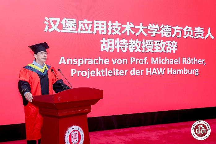 学院德方负责人、德国汉堡应用技术大学Michael Röther教授在致辞中高度评价了2025届毕业生在整个求学期间所展现出的坚韧不拔、持之以恒的精神风貌。他期望同学们在未来能够具备踏上新旅程的勇气、面对挫折时永不言败的决心以及面对挑战时的幽默感。学院电气专业负责人司呈勇、机械专业负责人马艳艳以及汉堡应用技术大学电气专业负责人Vaupel、机械专业教授Beyer也分别致辞,向毕业生们致以最诚挚的祝福。