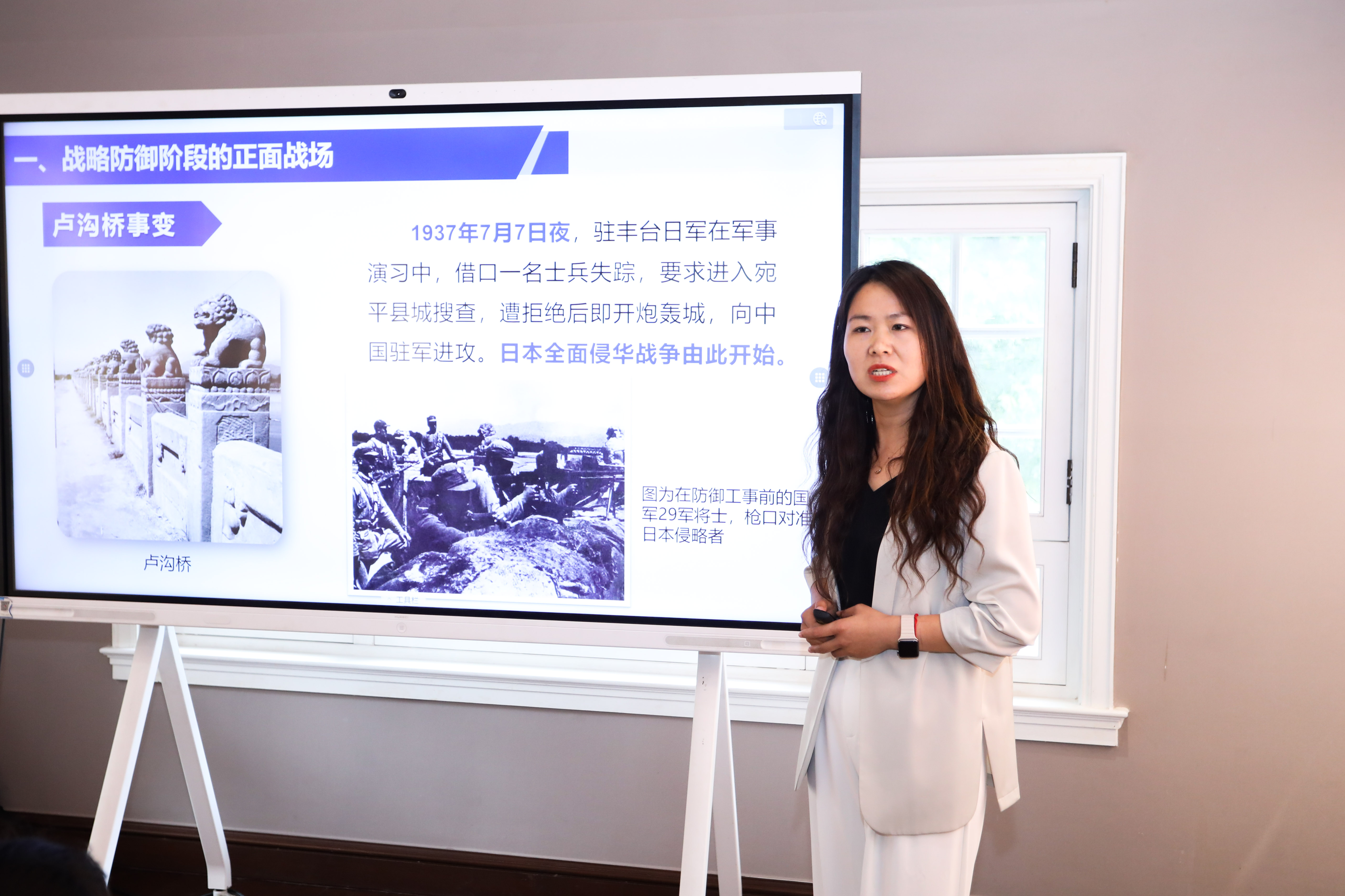 课程开始,马克思主义学院曲利杰老师讲述中国人民全民族抗战历史。她以深沉而激昂的声音,引领学生们回溯那段烽火连天的岁月。从卢沟桥的枪声到平型关大捷的振奋,从敌后战场坚韧卓绝的游击斗争到全民皆兵的壮阔图景,从中日军事对比悬殊到抗日民族统一战线,宏大的历史图景在讲述中徐徐展开。这些属于中华民族的宝贵精神基因,在她铿锵的话语中化为一股热流,在学生心中奔涌不息,刻下不可磨灭的印记。